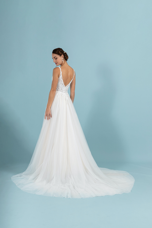 Une vraie merveille de robe !!! Elle est juste magnifique !! Son bustier est très travaillé et très chic avec sa dentelle ivoire et ses petites perles. C’est mon coup de cœur !!!